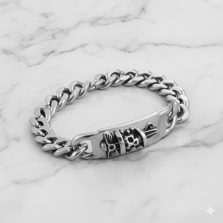 Our journey began long before the brand was officially launched. Inspired by the rebellious spirit and timeless symbols such as crosses, daggers, and fleur-de-lis, Skullsaint crafts pieces that embody strength, freedom, and self-expression.
