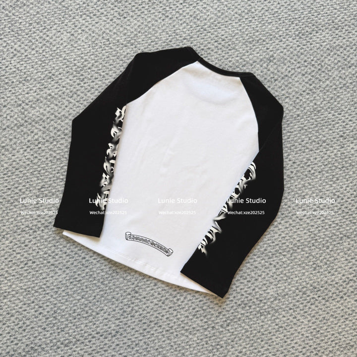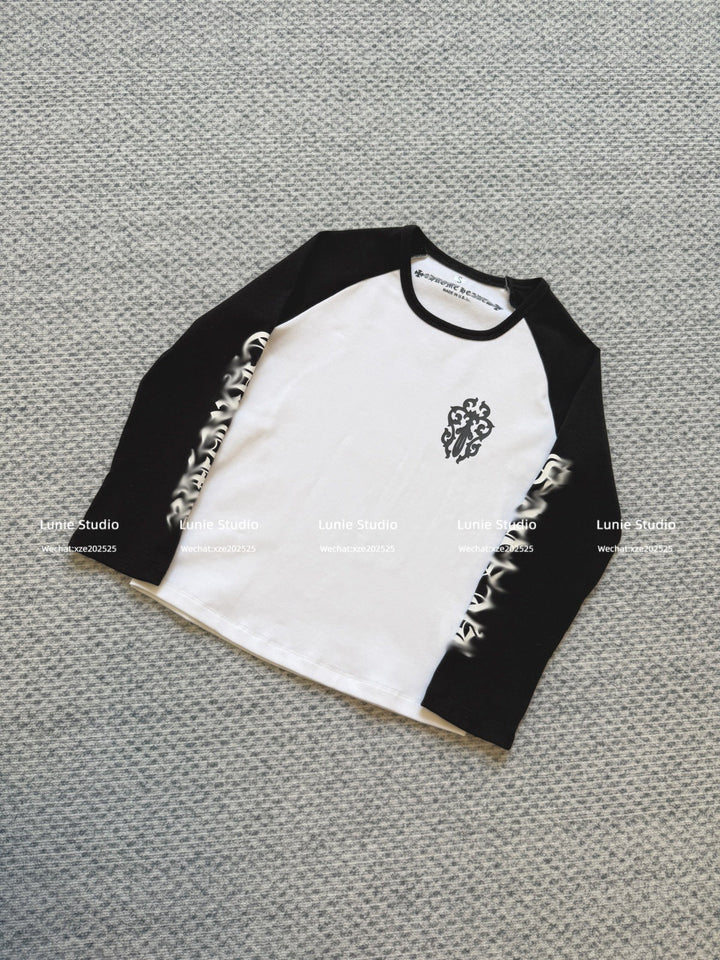 chrome hearts black and white stitching contrasting Sanskrit T-shirt