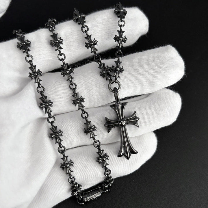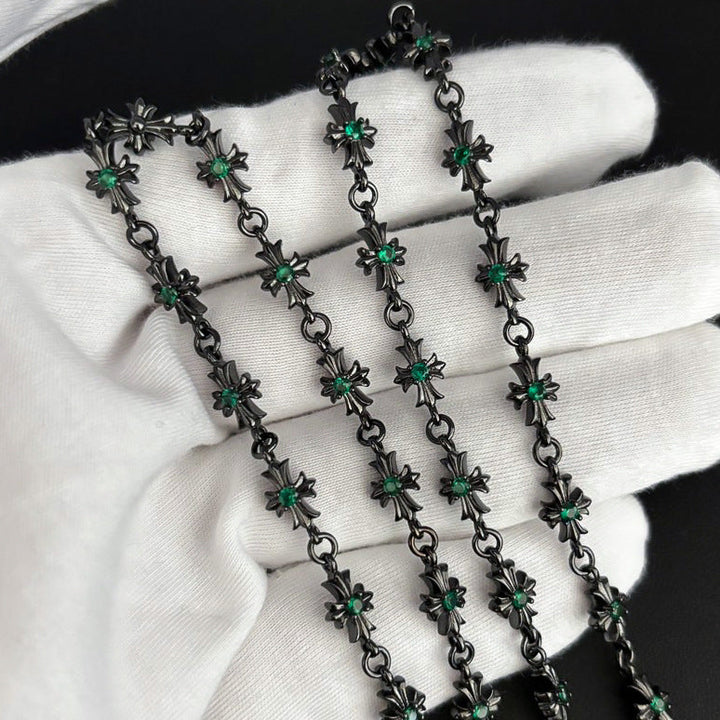 Chrome Hearts black cross inlaid with green zircon necklace