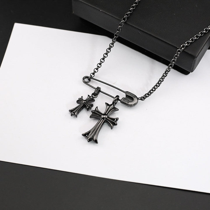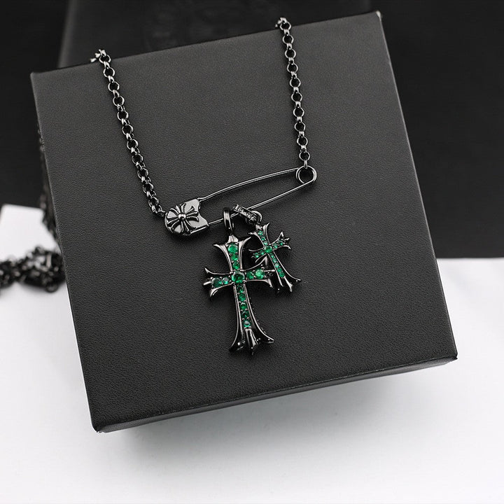 Chrome Hearts black green diamond double cross brooch necklace