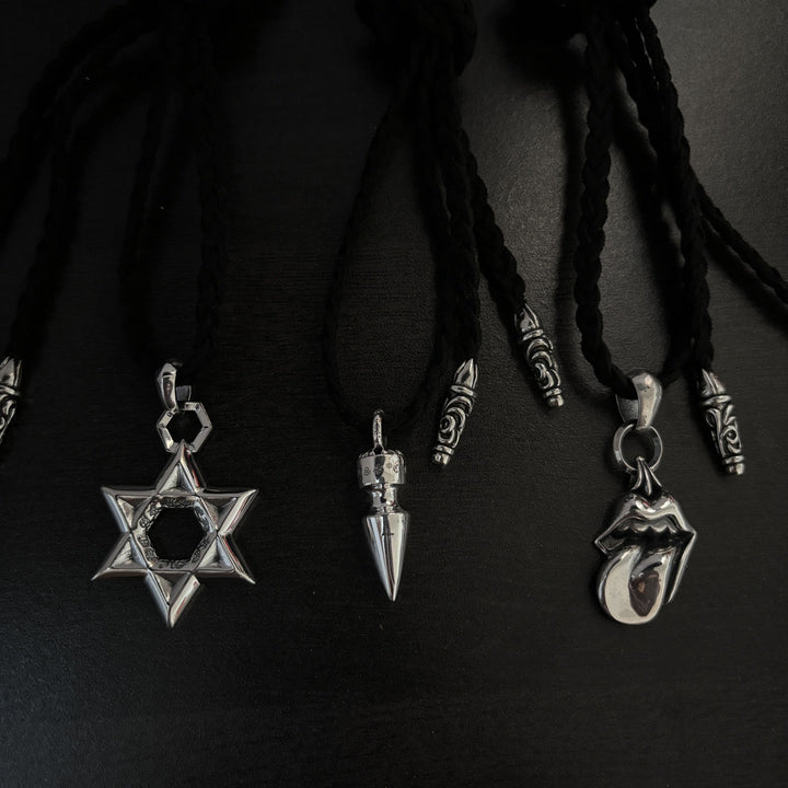 Chrome Hearts bullet-shaped six-pointed star tongue style leather rope necklace