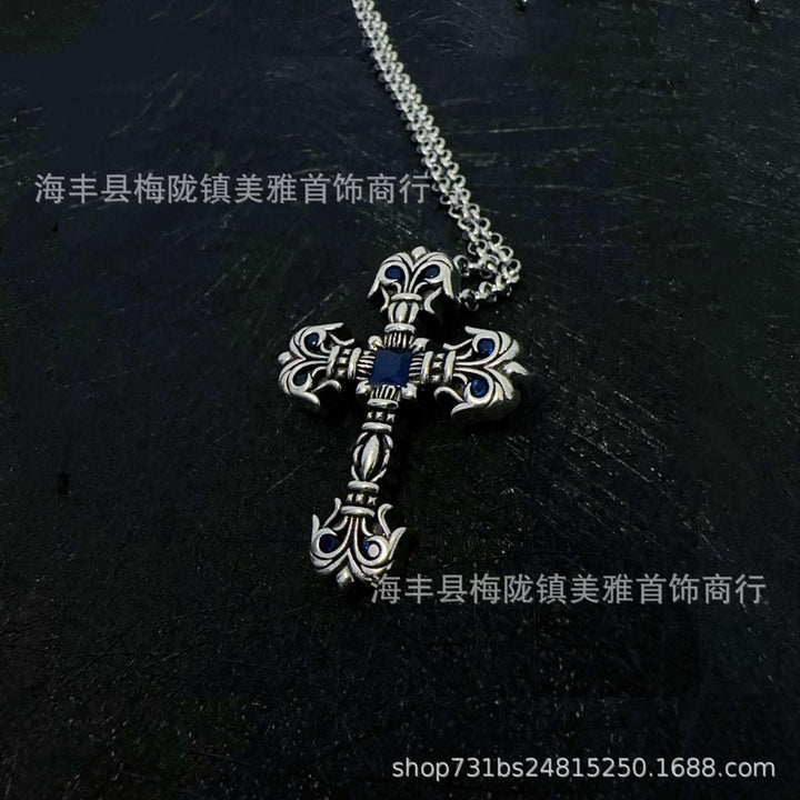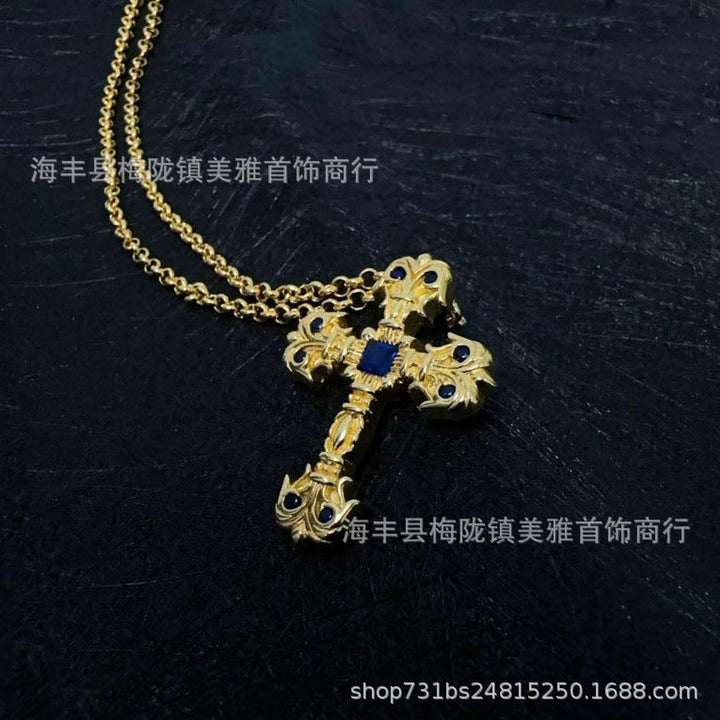 Color: retro blue diamond flame necklace, gold blue diamond flame necklace, retro flame necklace