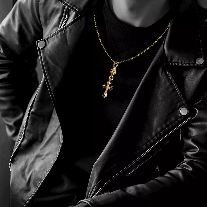 CHROME HEARTS GOLD CROSS WITH ONE GOLD BALL CHARM