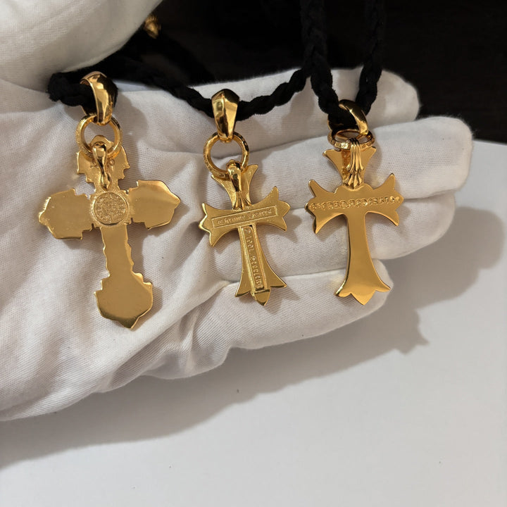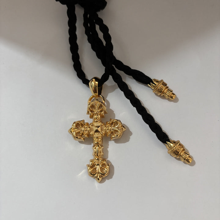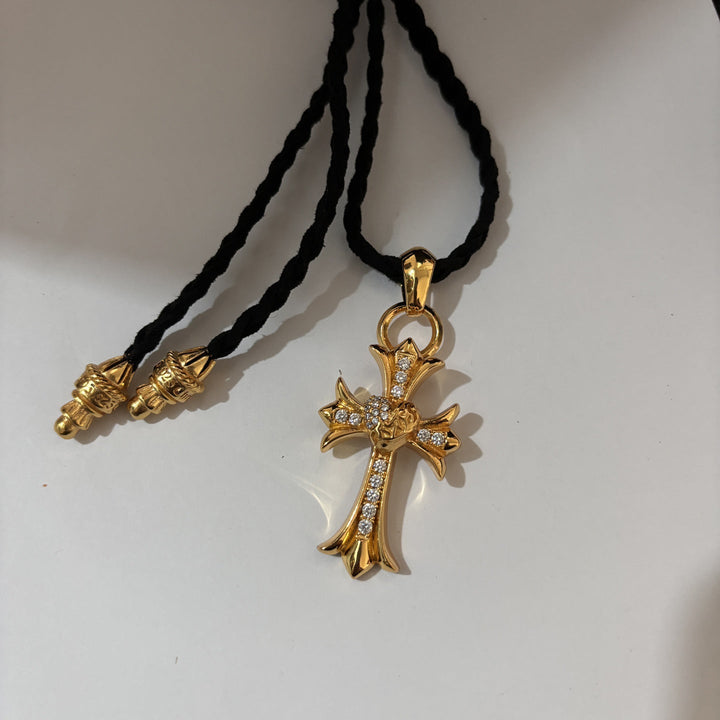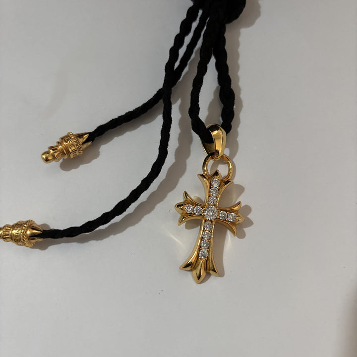 Chrome Hearts golden cross leather rope necklace