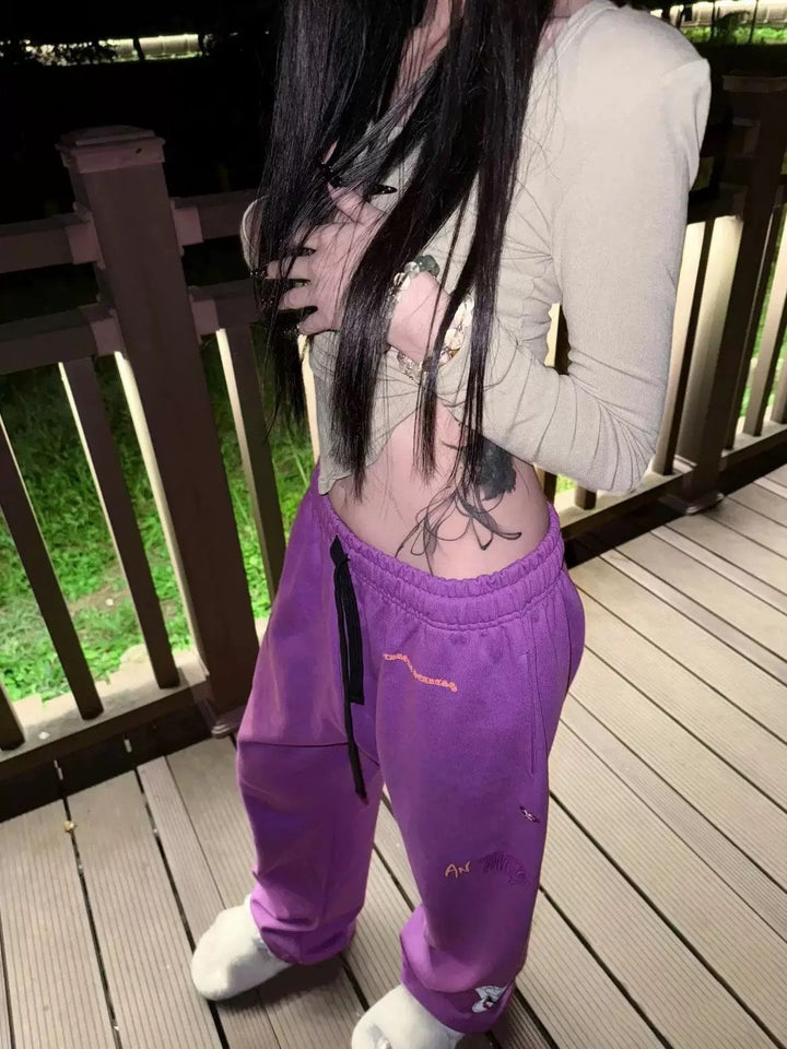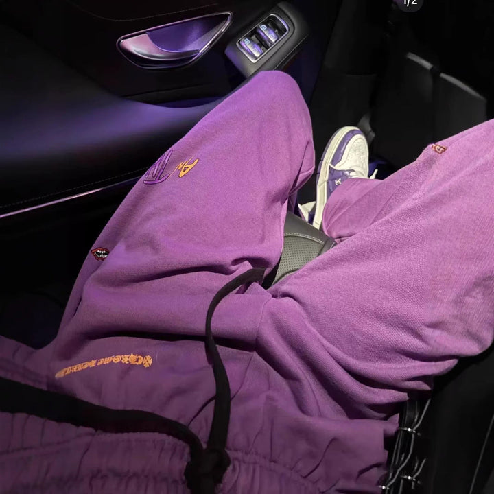 Chrome Hearts graffiti print casual drawstring purple sweatpants