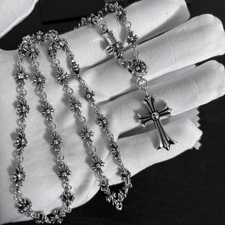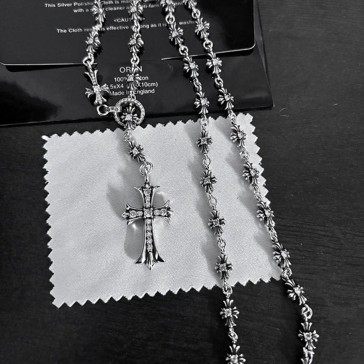 Chrome Hearts large and small cross inlaid with white diamond necklace