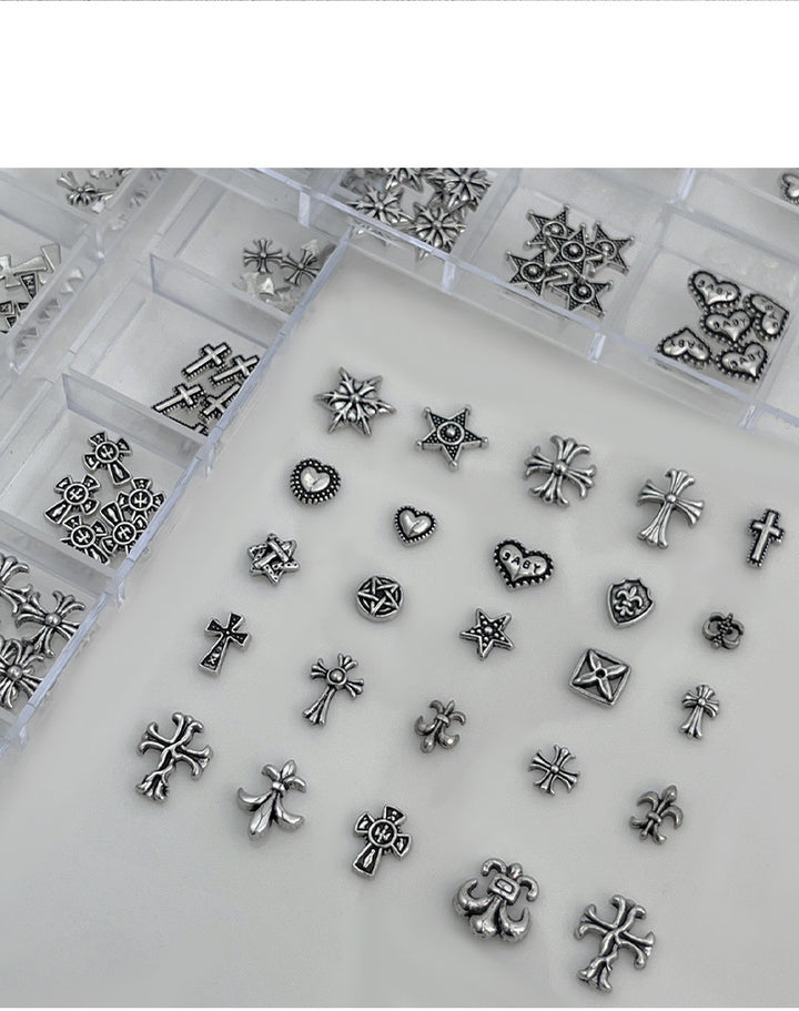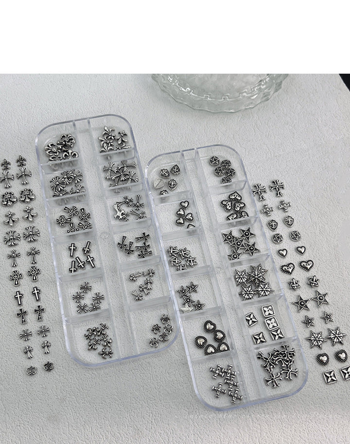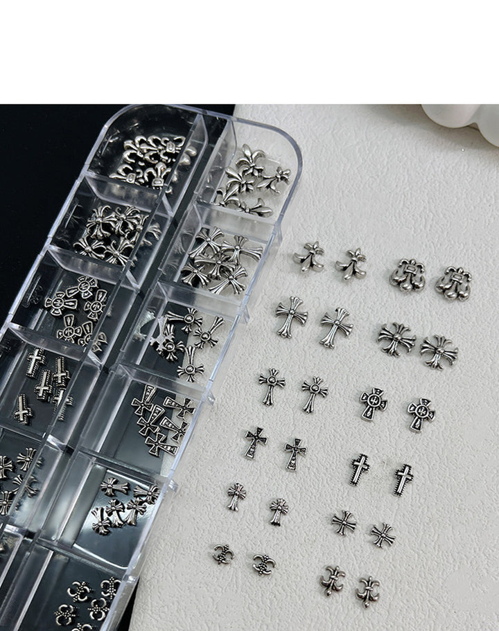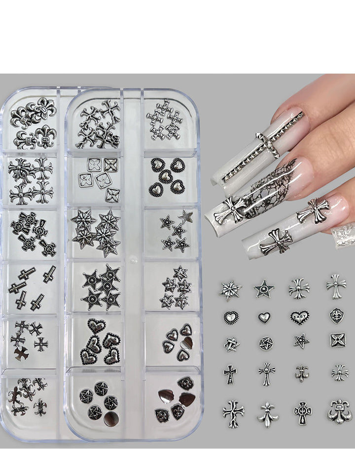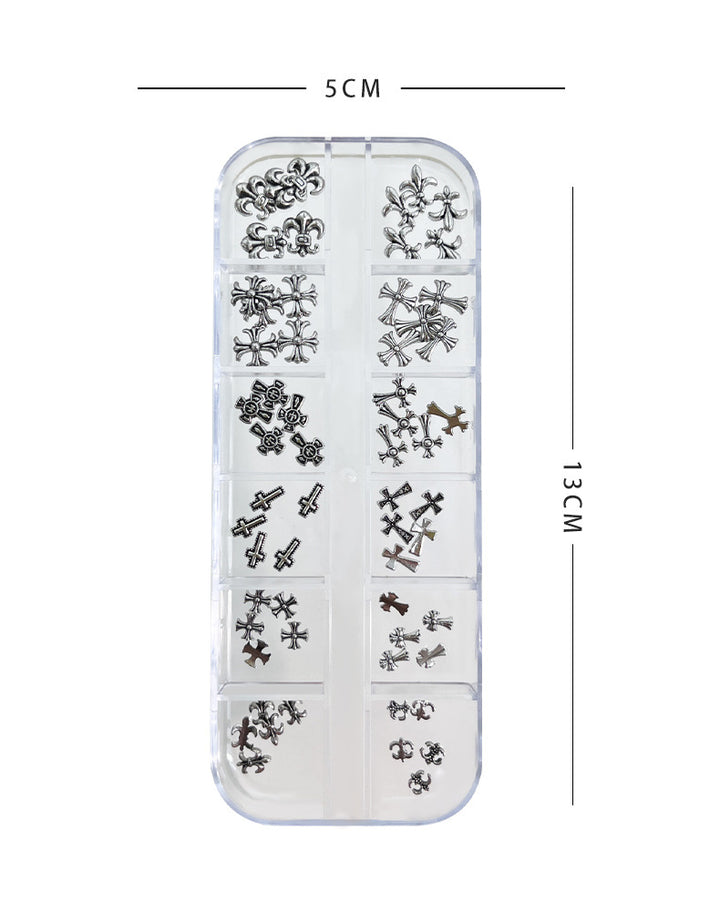Chrome Hearts Nail Art Set - Retro Dark Style Cross Metal Rivet Nail Rhinestones (12 Slots)