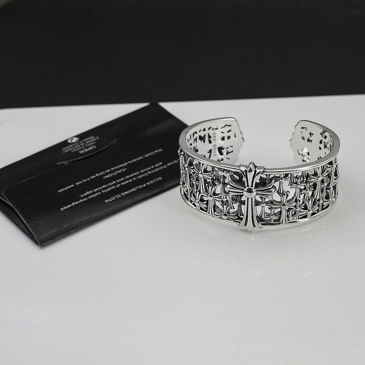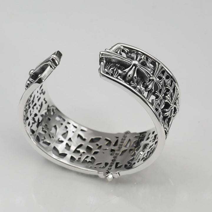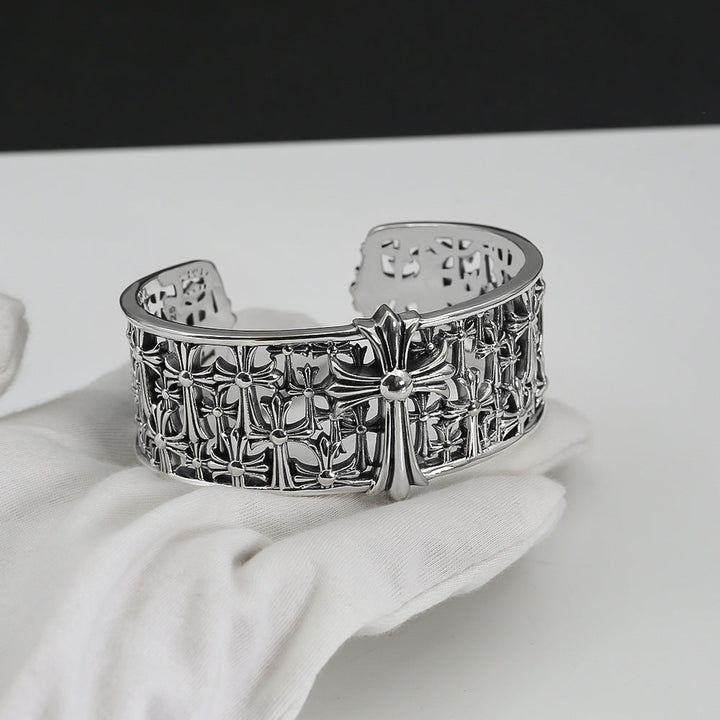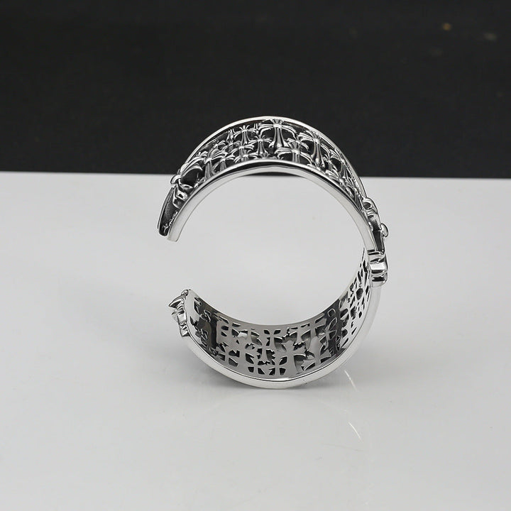 Chrome Hearts old hollow wide tombstone multi-cross open bracelet