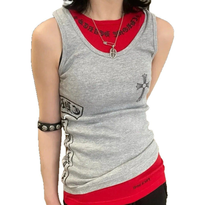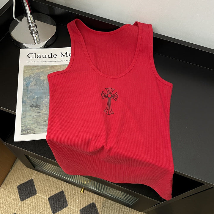 Color: red cross vest, red Sanskrit short vest, gray Sanskrit short vest