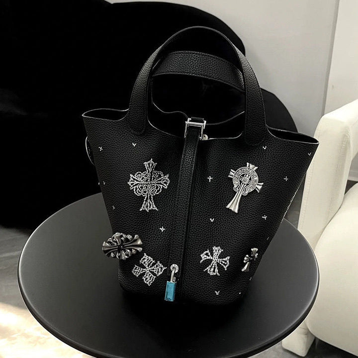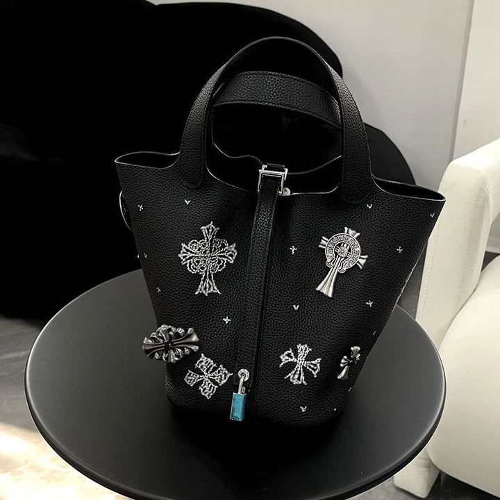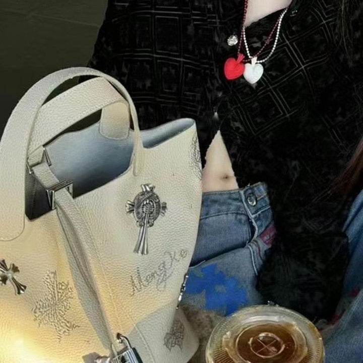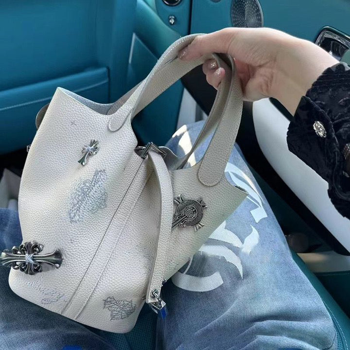 Chrome Hearts printed retro spicy girl style hand-held bucket bag