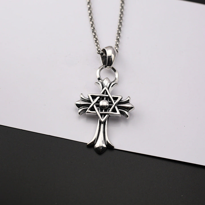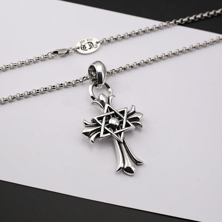Chrome Hearts punk retro six-pointed star cross necklace
