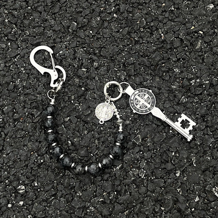 Color: bright black bead round plate, bright black bead key short chain