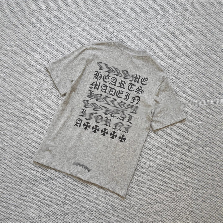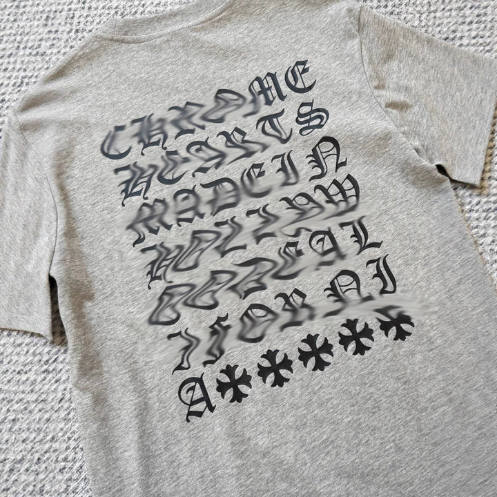 chrome hearts round-neck Sanskrit letter gray short-sleeved T-shirt