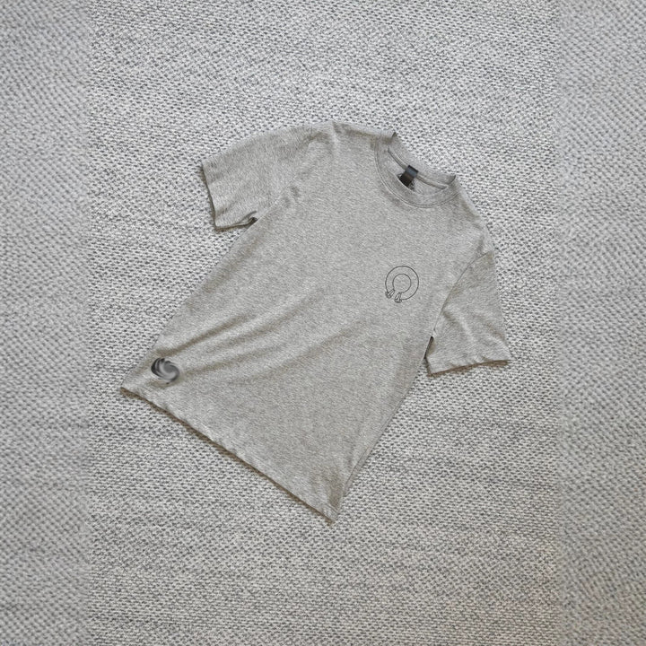 Color: Gray short-sleeved T-shirt with Sanskrit letters