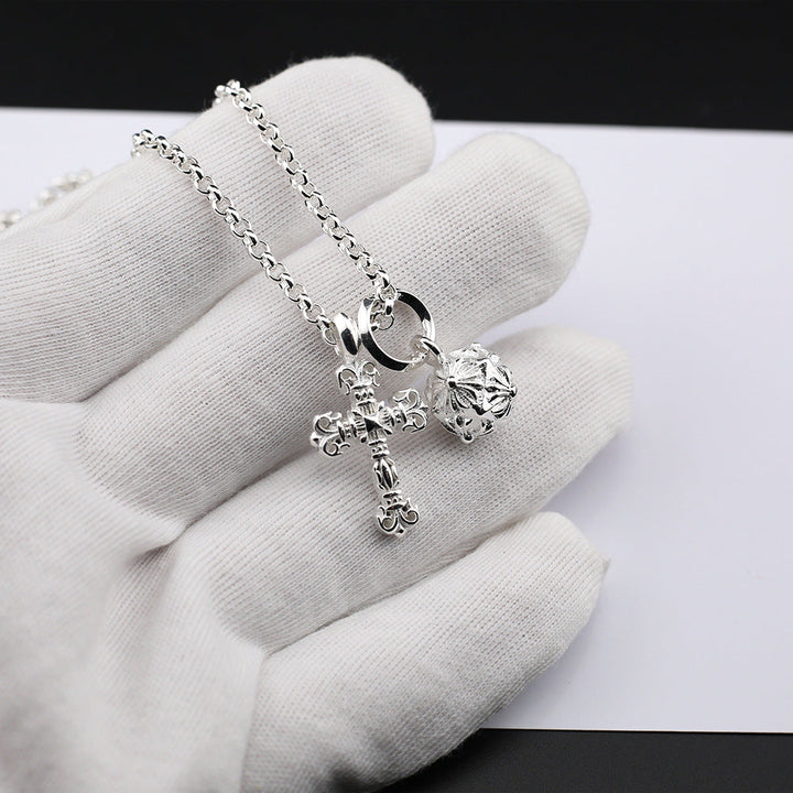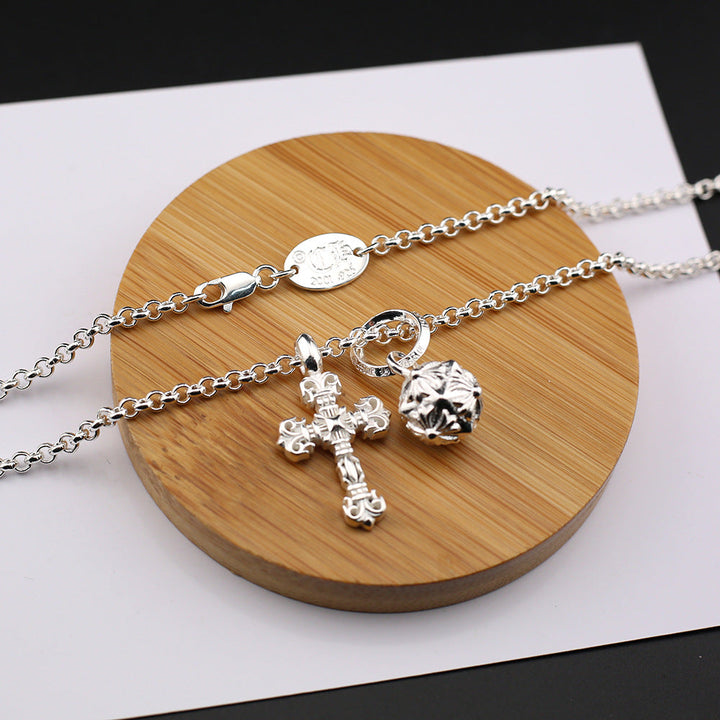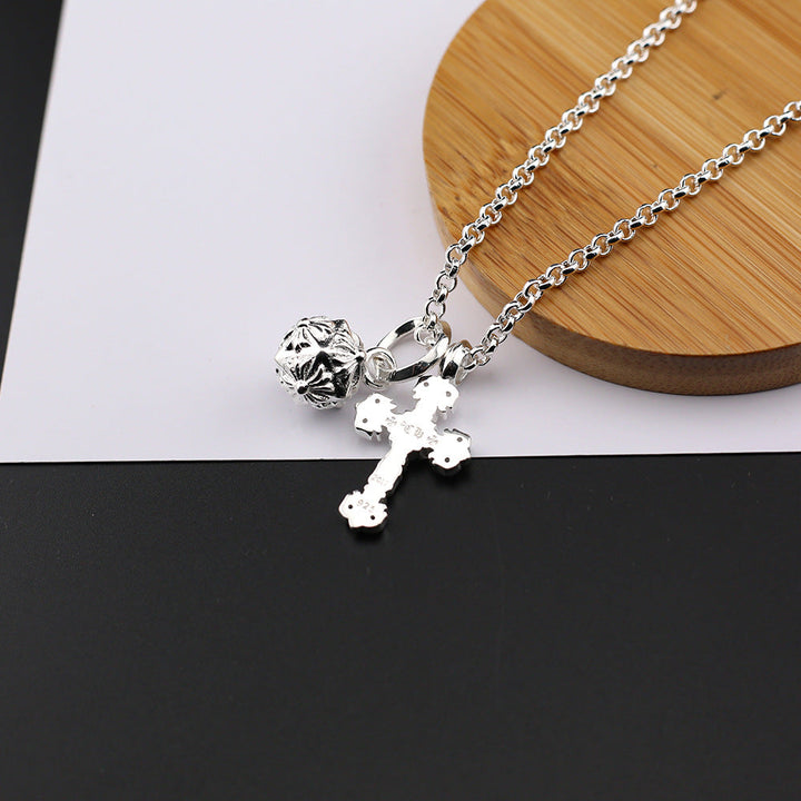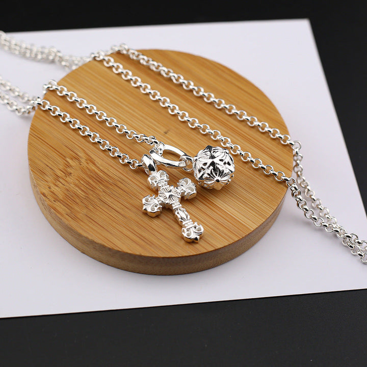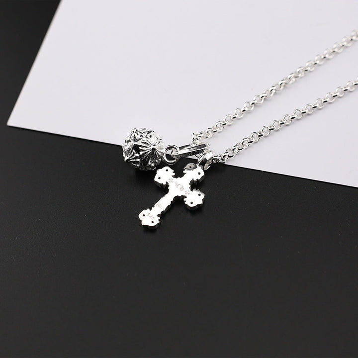 Chrome Hearts Silver Cross Hammer Flame Cross Necklace