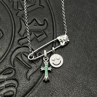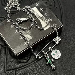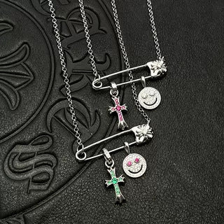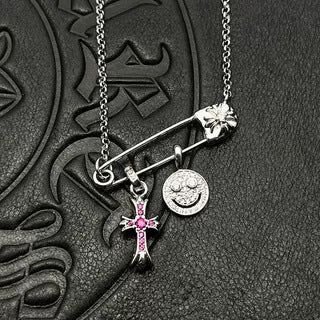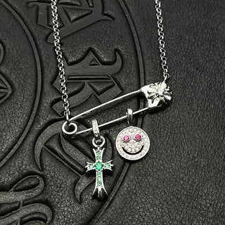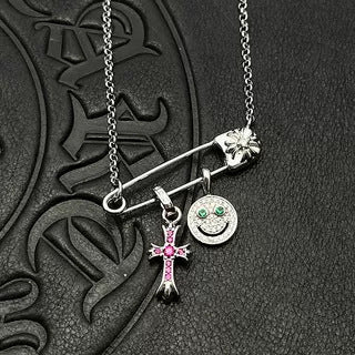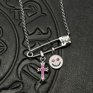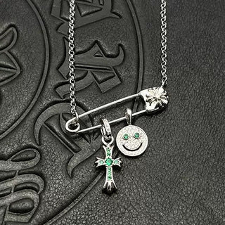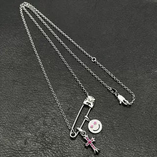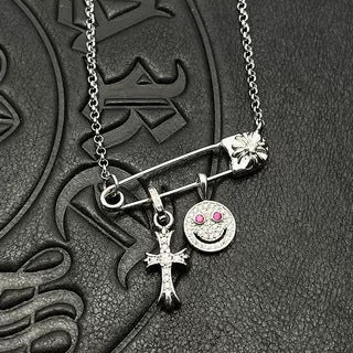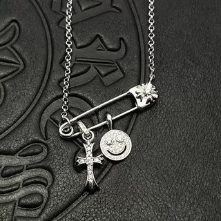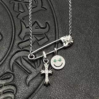 Chrome Hearts silver smiley cross diamond brooch necklace