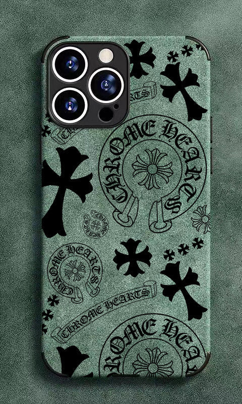 Inspired by Chrome Hearts designs, this puffer case is adorned with multiple gothic crosses, turning your iPhone into a fashion accessory that completes your streetwear style. -