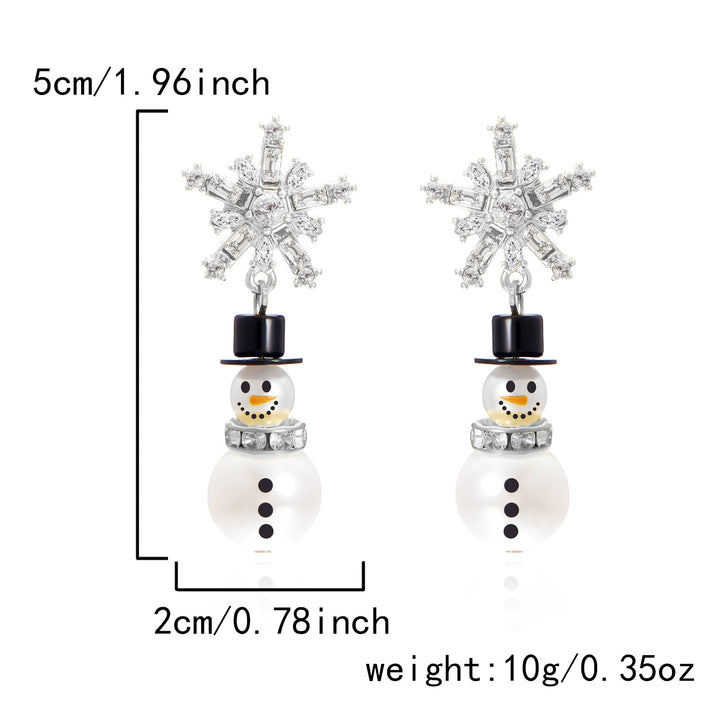 Women's Christmas diamond snowflake pearl hat snowman earrings